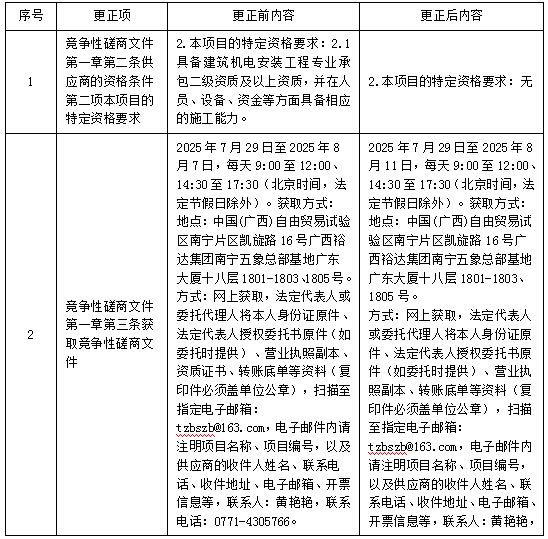 更正事項:競爭性磋商文件